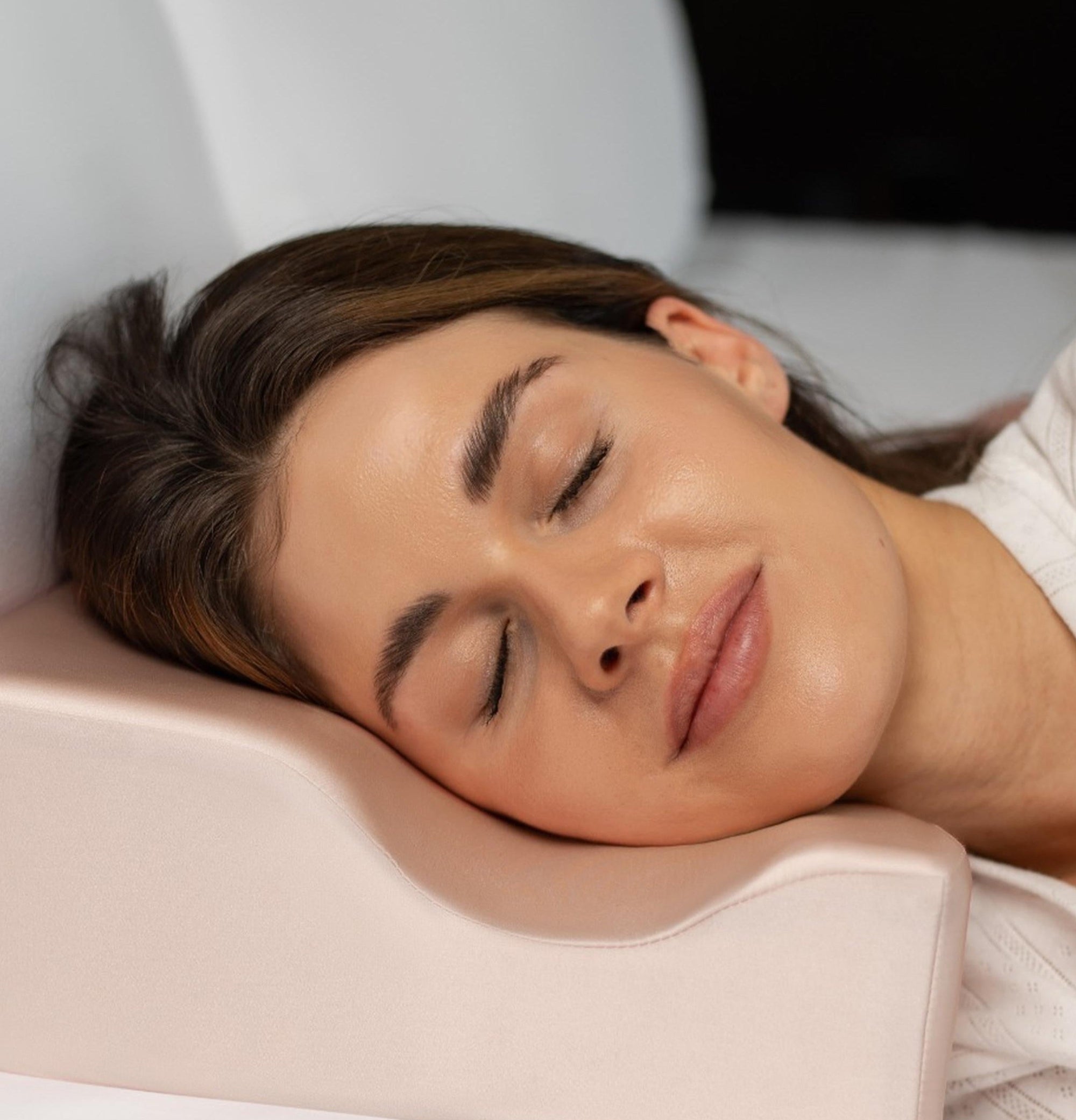 Schlafe bequem auf dem SkinPad, das dank ärztlich entwickelter Technologie vor Faltenbildung schützt.