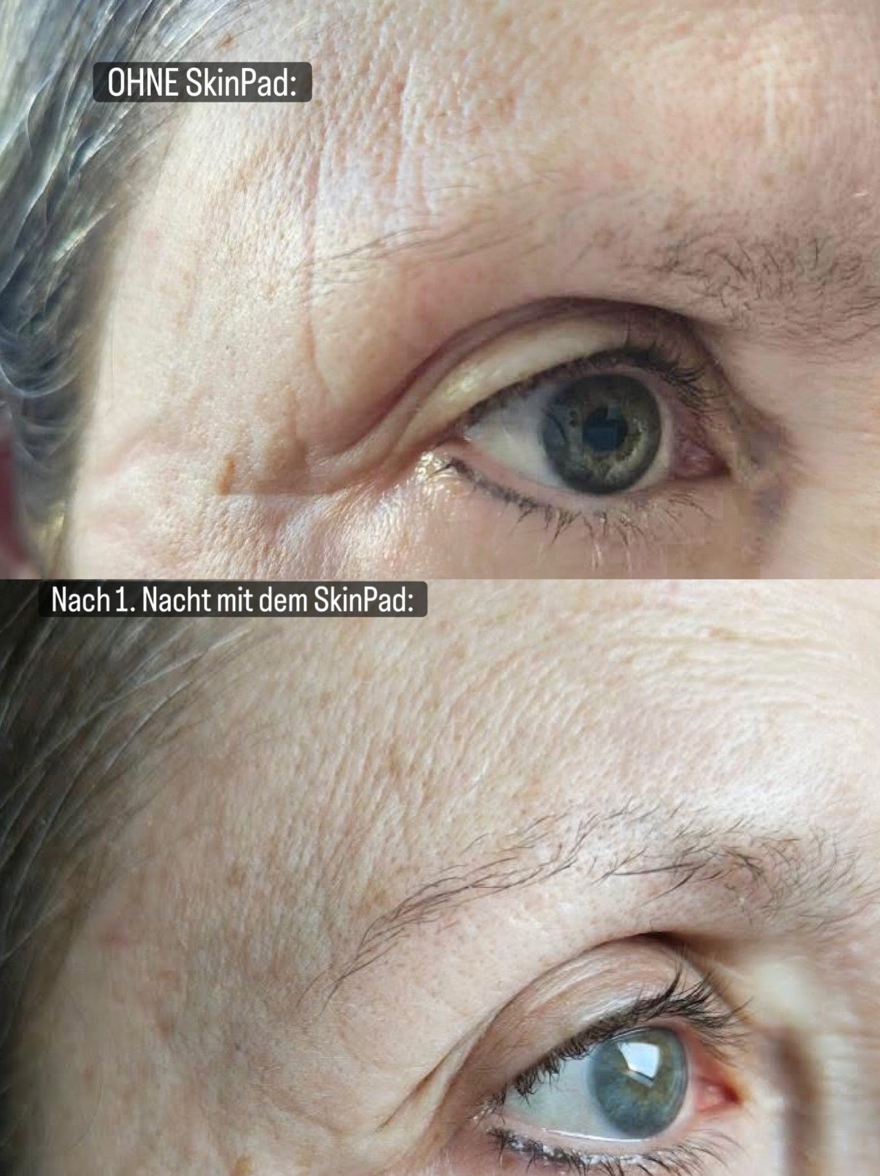 Schon nach der ersten Nacht merken die meisten Nutzer:innen, dass sie ohne typische Schlaffalten, Schwellungen oder Abdrücke aufwachen. Glattere Haut und minimierte Fältchen zeigen sich meist innerhalb 8 Wochen. Gleichzeitig bewahrt Sie das SkinPad vor der Entstehung neuer Schlaffalten.